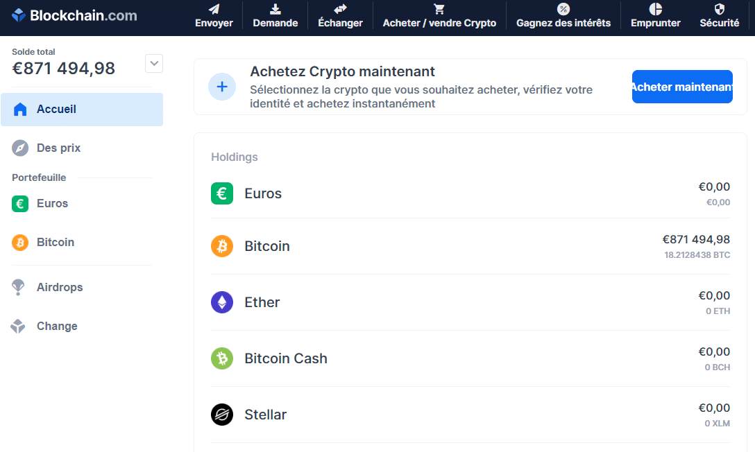 *Mon conseil* Sans téléchargement de la blockchain : vous pouvez vous rendre sur le site blockchain.com qui propose un service de wallet bitcoin efficace et indépendant. Ils n'ont pas accès à vos clés privées et donc aucun contrôle dessus. Créez votre wallet en quelques étapes et choisissez un mot de passe COMPLEXE. J'insiste sur ce point : si vous ne comprenez pas l'importance d'un mot de passe complexe vous ne devriez pas vous lancer dans les cryptos, un jour vous allez tout perdre. Un mot de passe complexe c'est une chaîne de caractères composées de lettres majuscules et minuscules, de chiffres et de caractères spéciaux, et au moins 16 en tout.